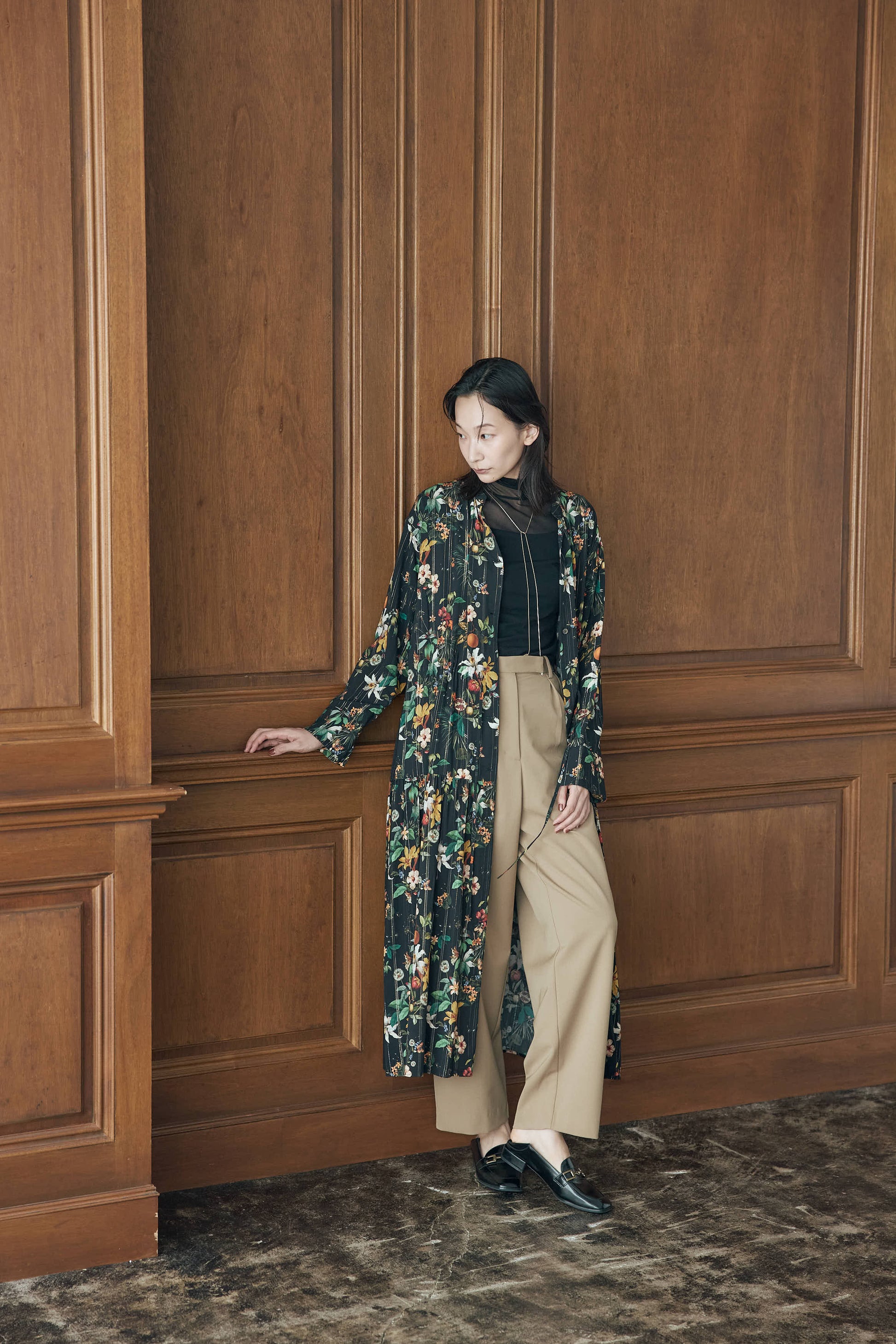環境に優しいストレッチ梳毛ウールはドライ感とハリのある風合いが特徴的