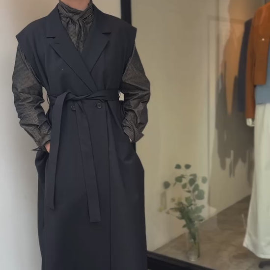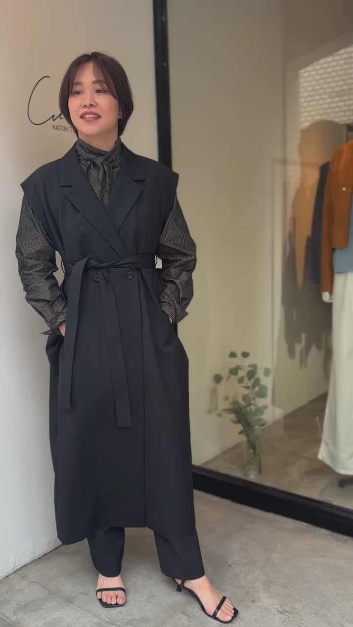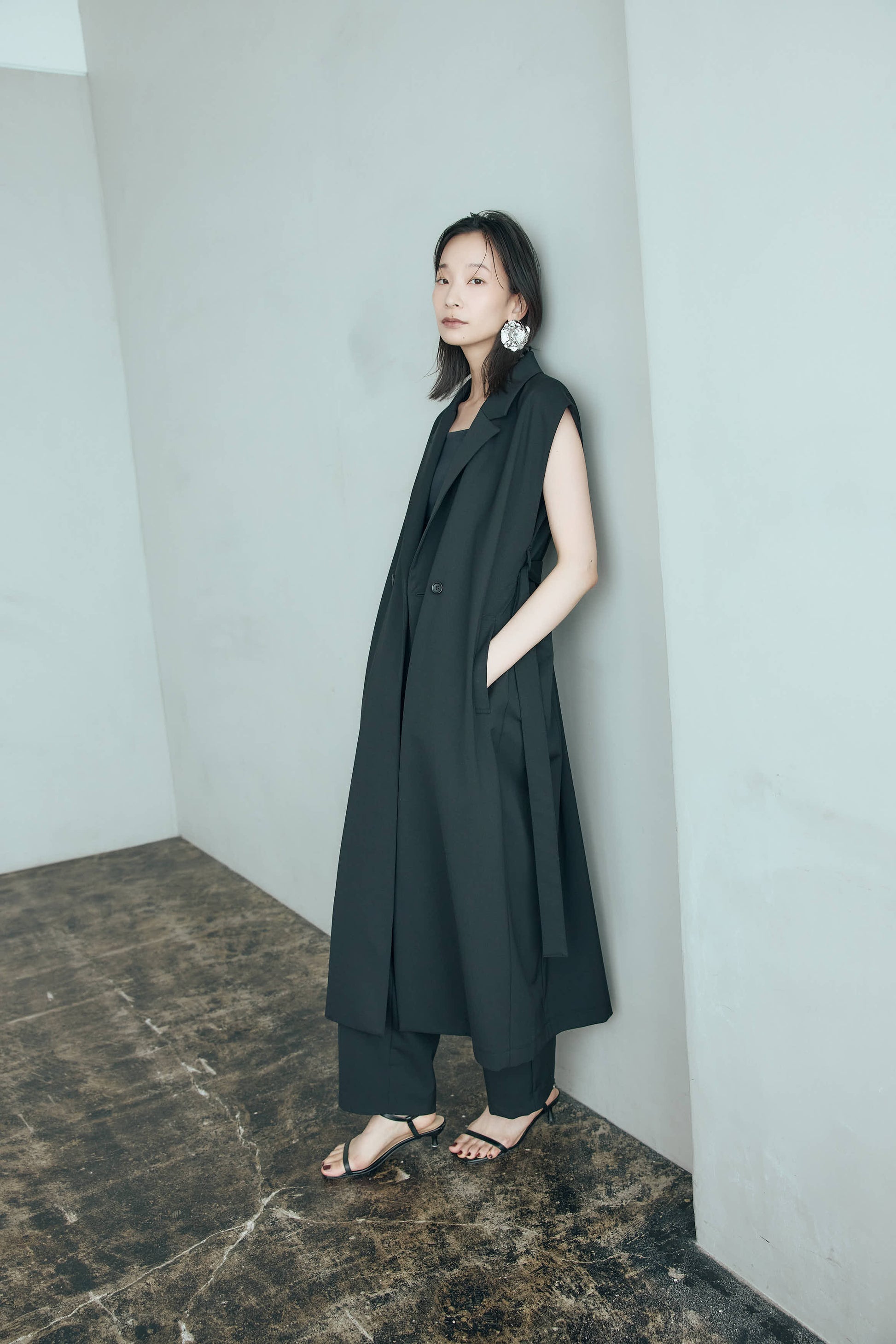 ベルト付きジレはウエストを引き締め、洗練されたバランスを生み出してくれます。