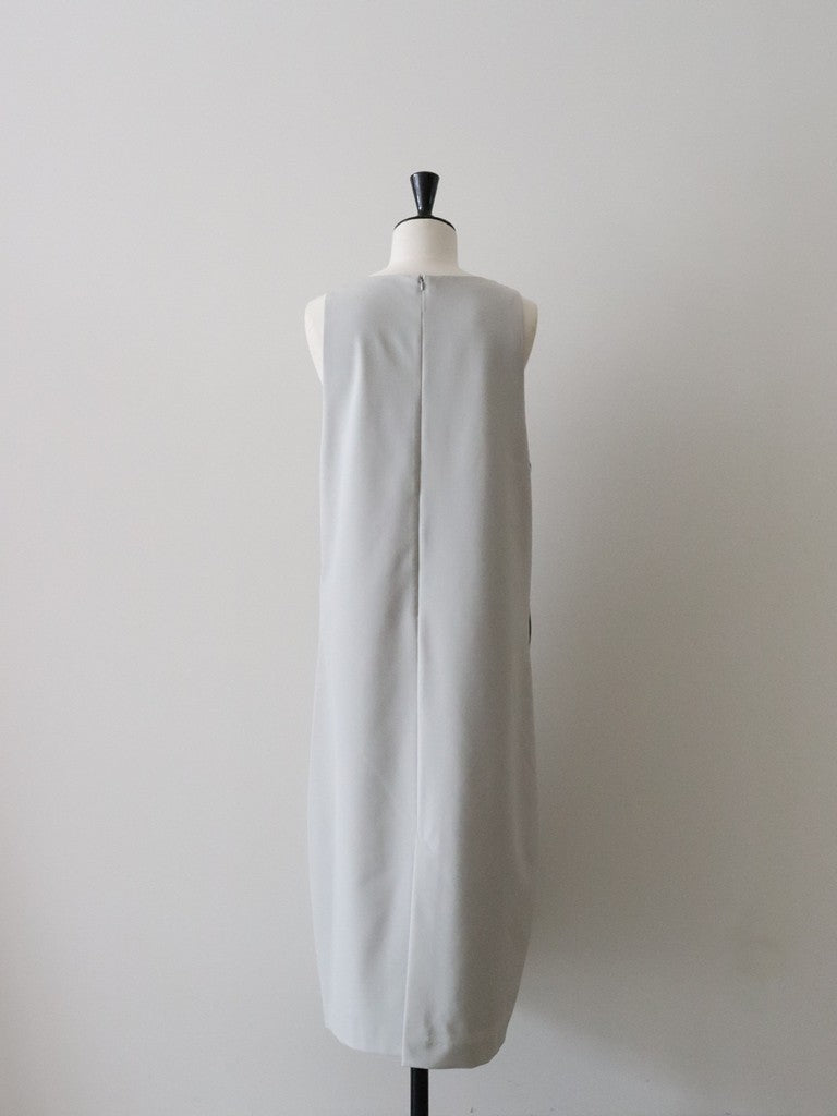 滑らかな手触りと上品な光沢のワンピースは高級感漂う印象に。