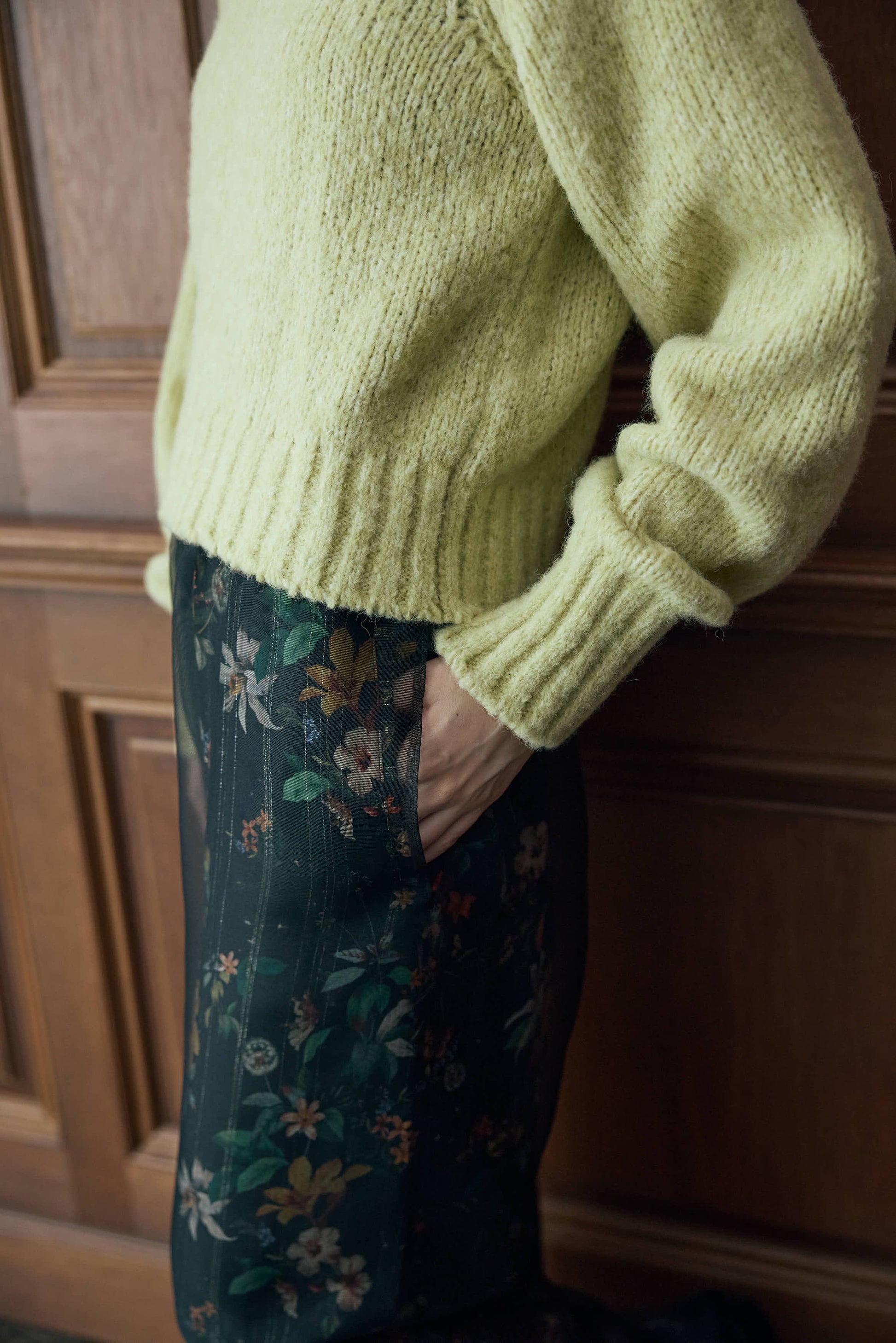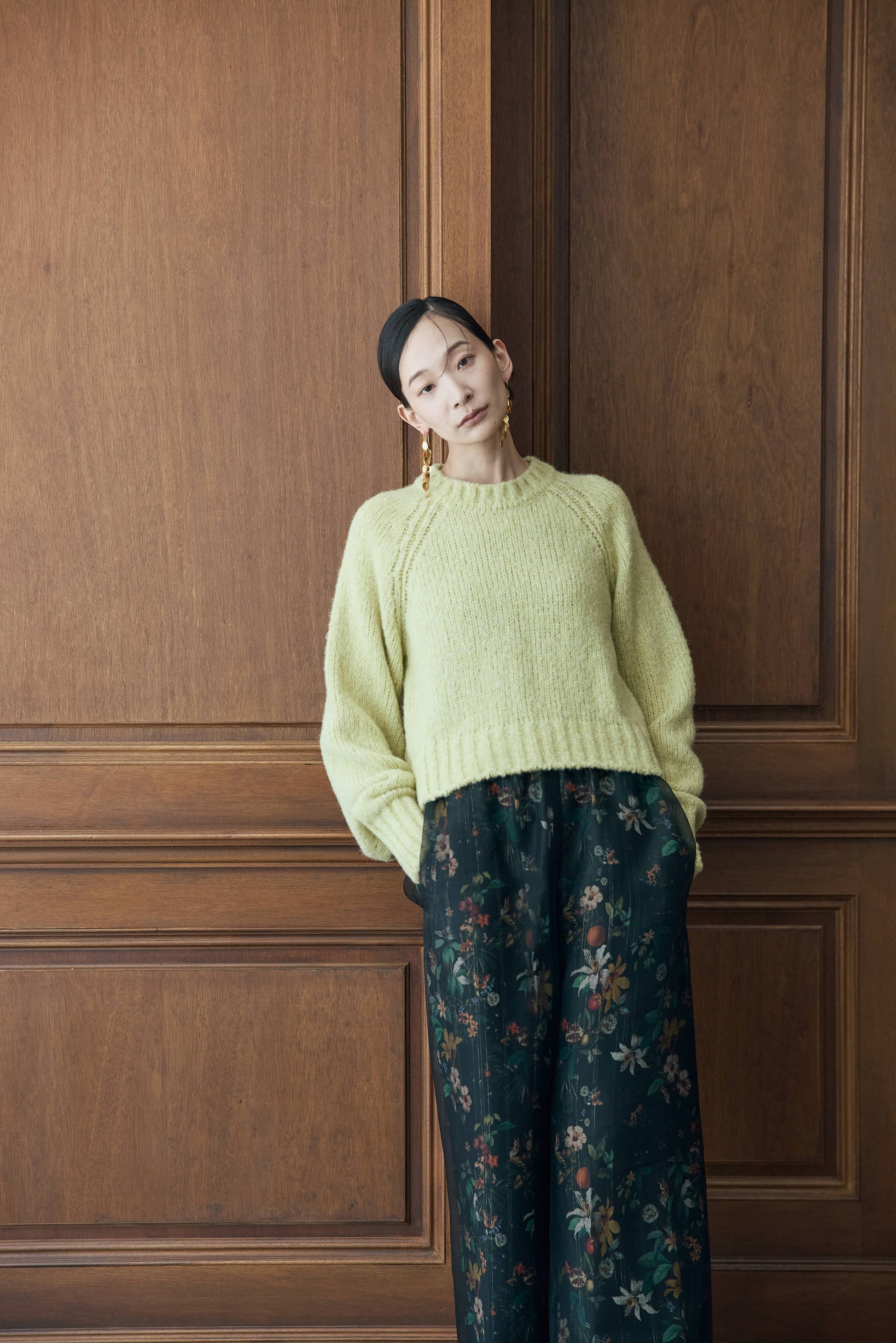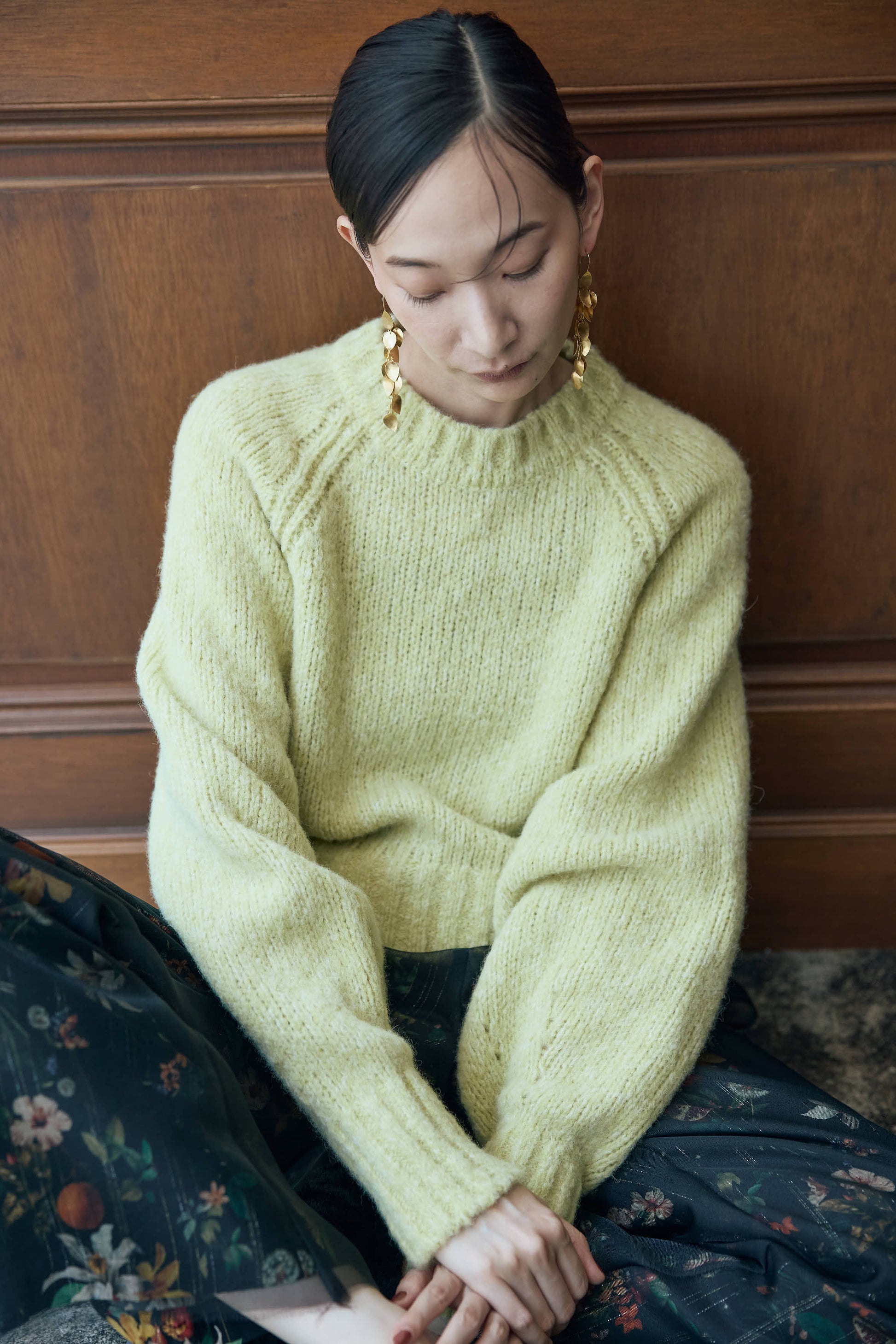 季節ならではの毛足のある素材感で、シーンムードを盛り上げるプルオーバーニット。