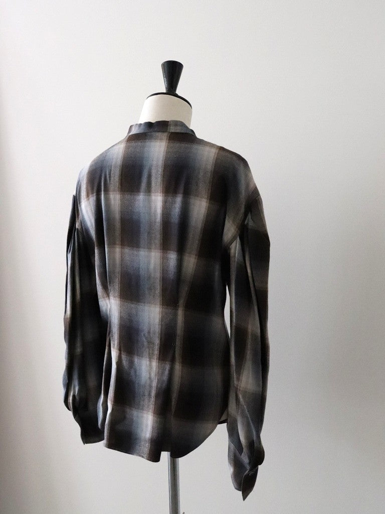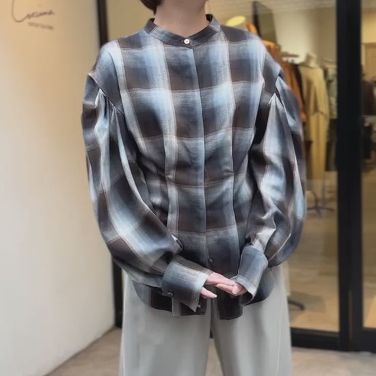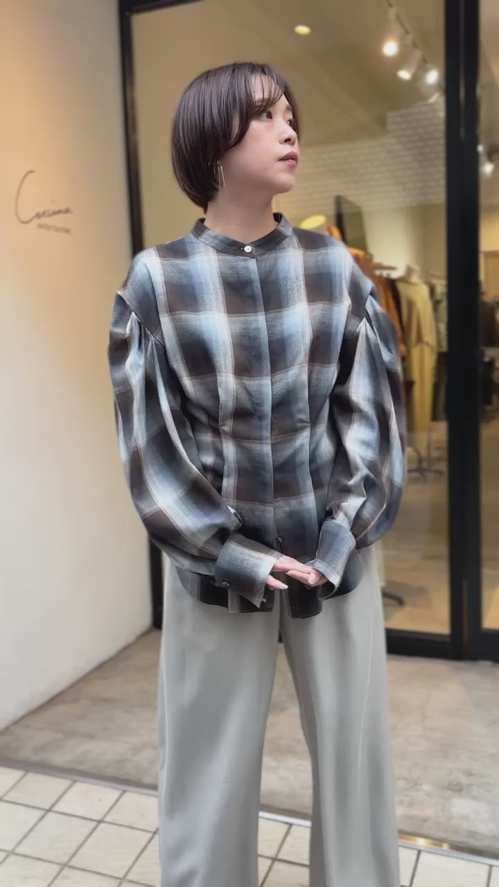 マドラスチェックボリュームブラウス(ブラウン)