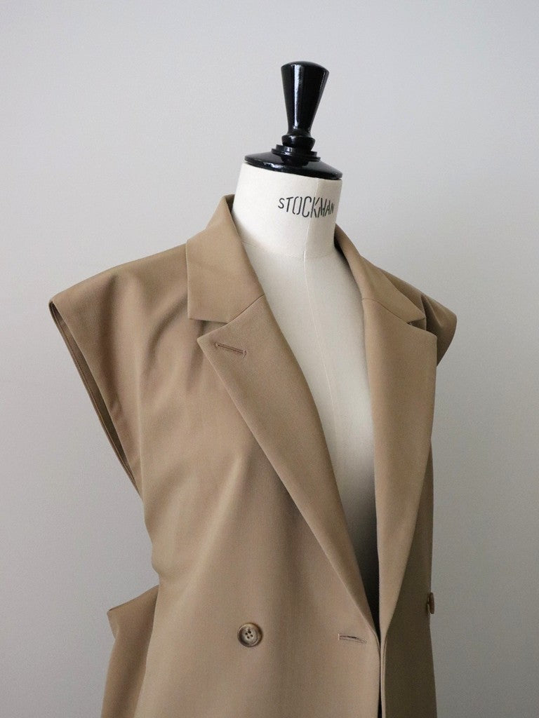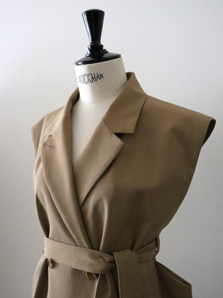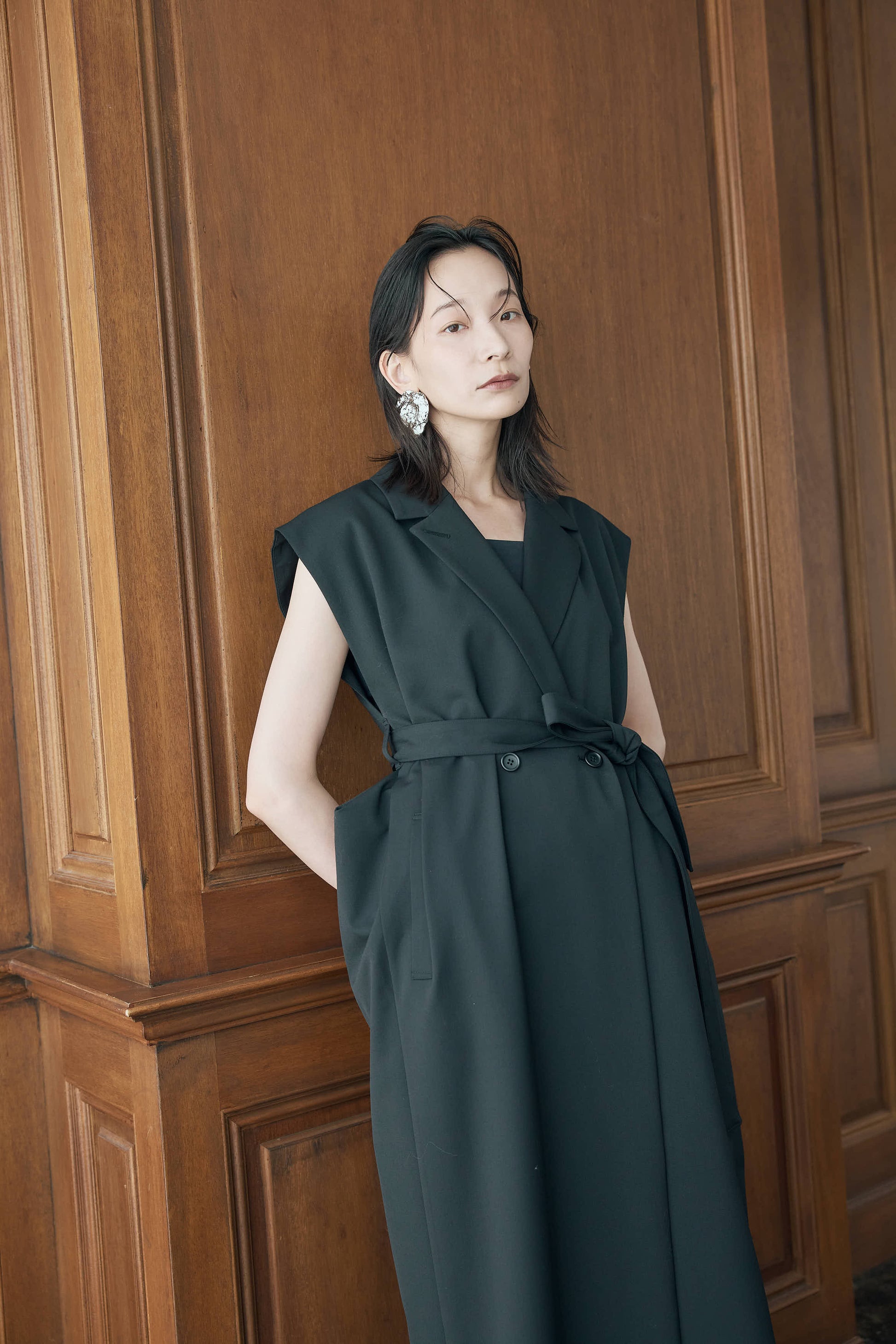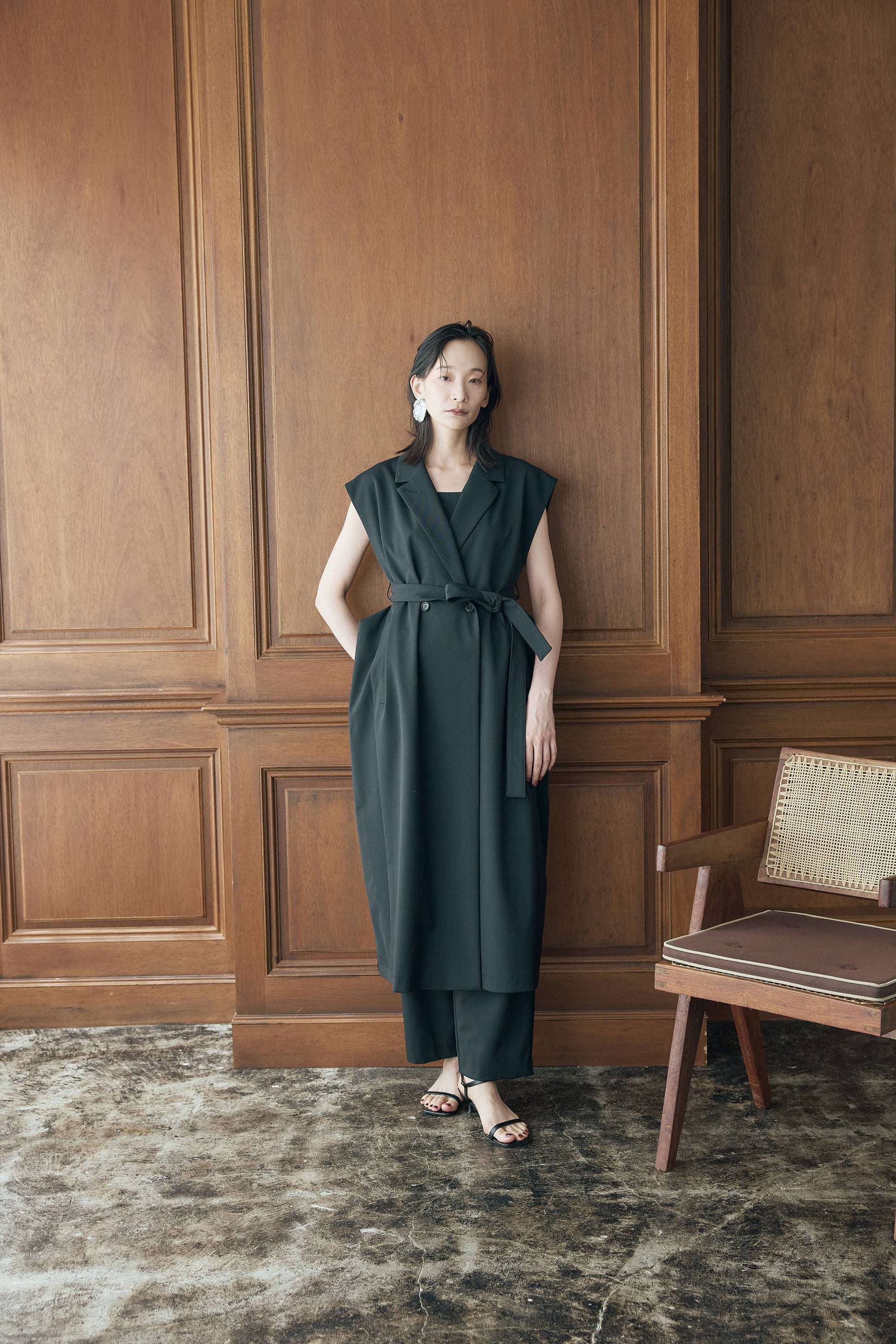 ベルト付きジレはウエストを引き締め、洗練されたバランスを生み出してくれます。