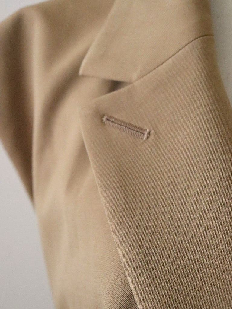 環境に優しいストレッチ梳毛ウールはドライ感とハリのある風合いが特徴的