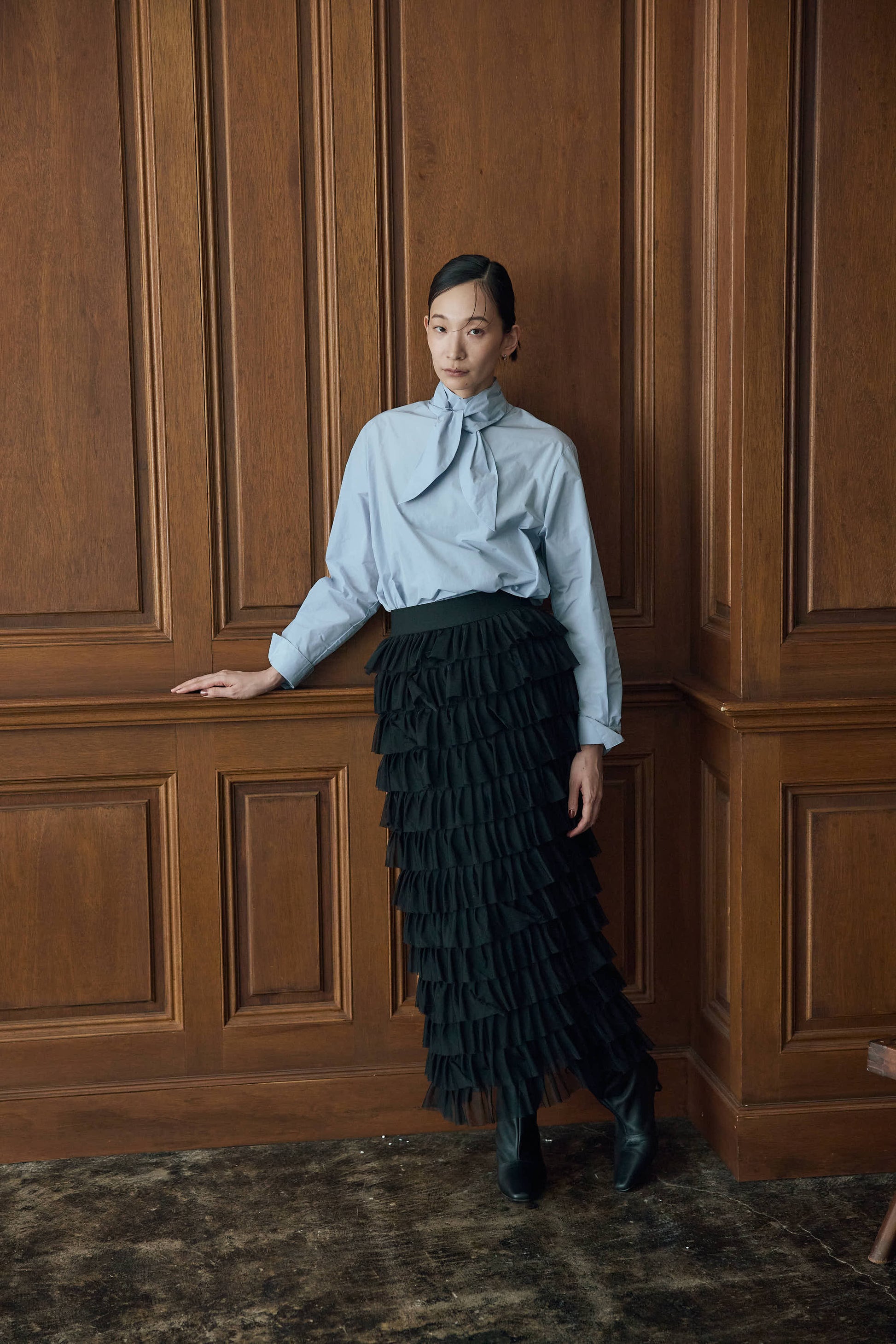 シワになりにくく、立体的なフォルムを美しくキープできる素材を使用